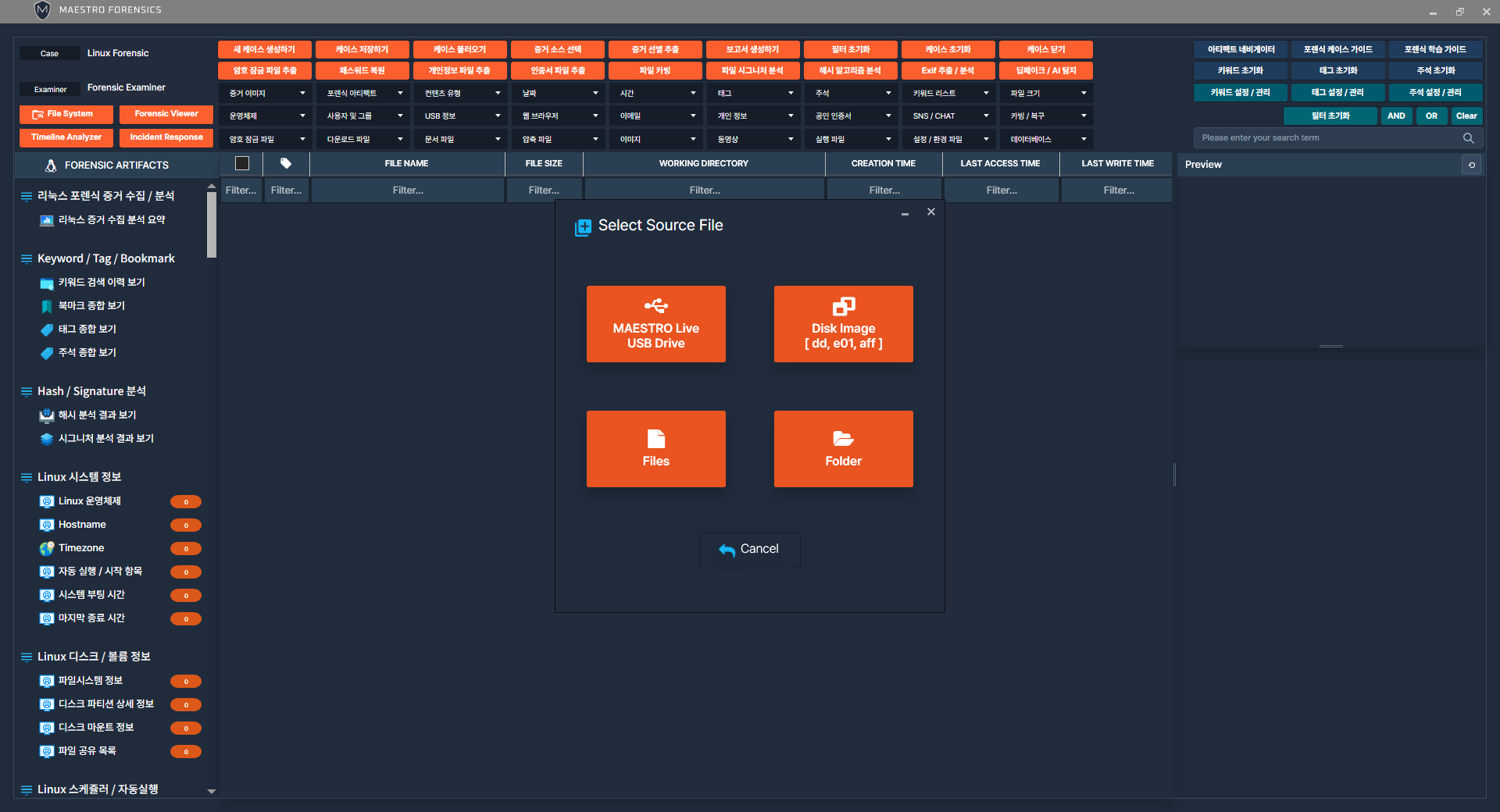 이미지 파일을 선택 후 증거 데이터를 불러오기 가능 합니다.