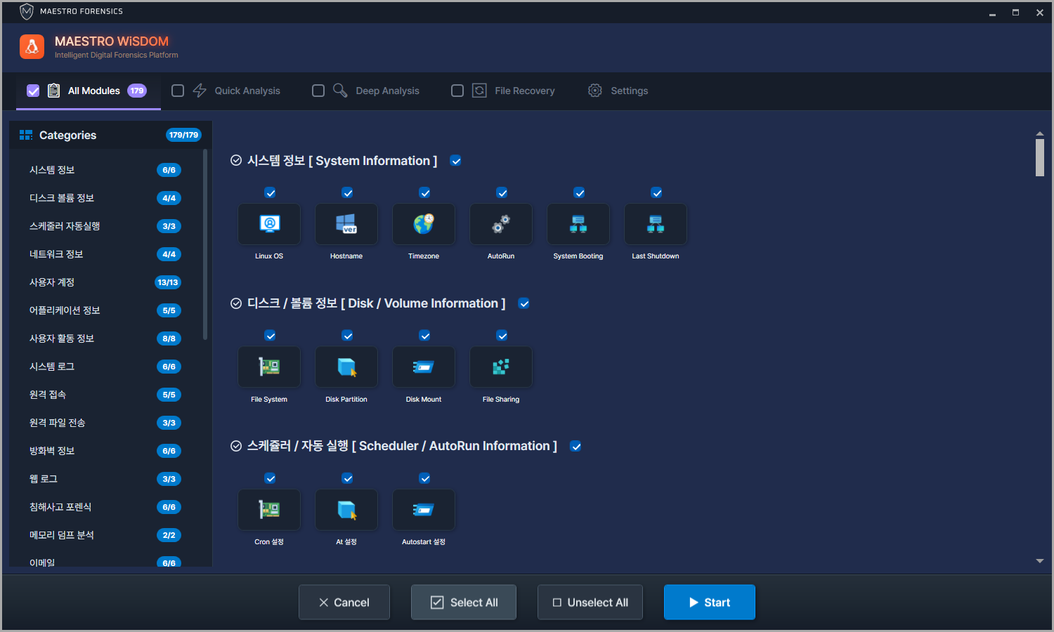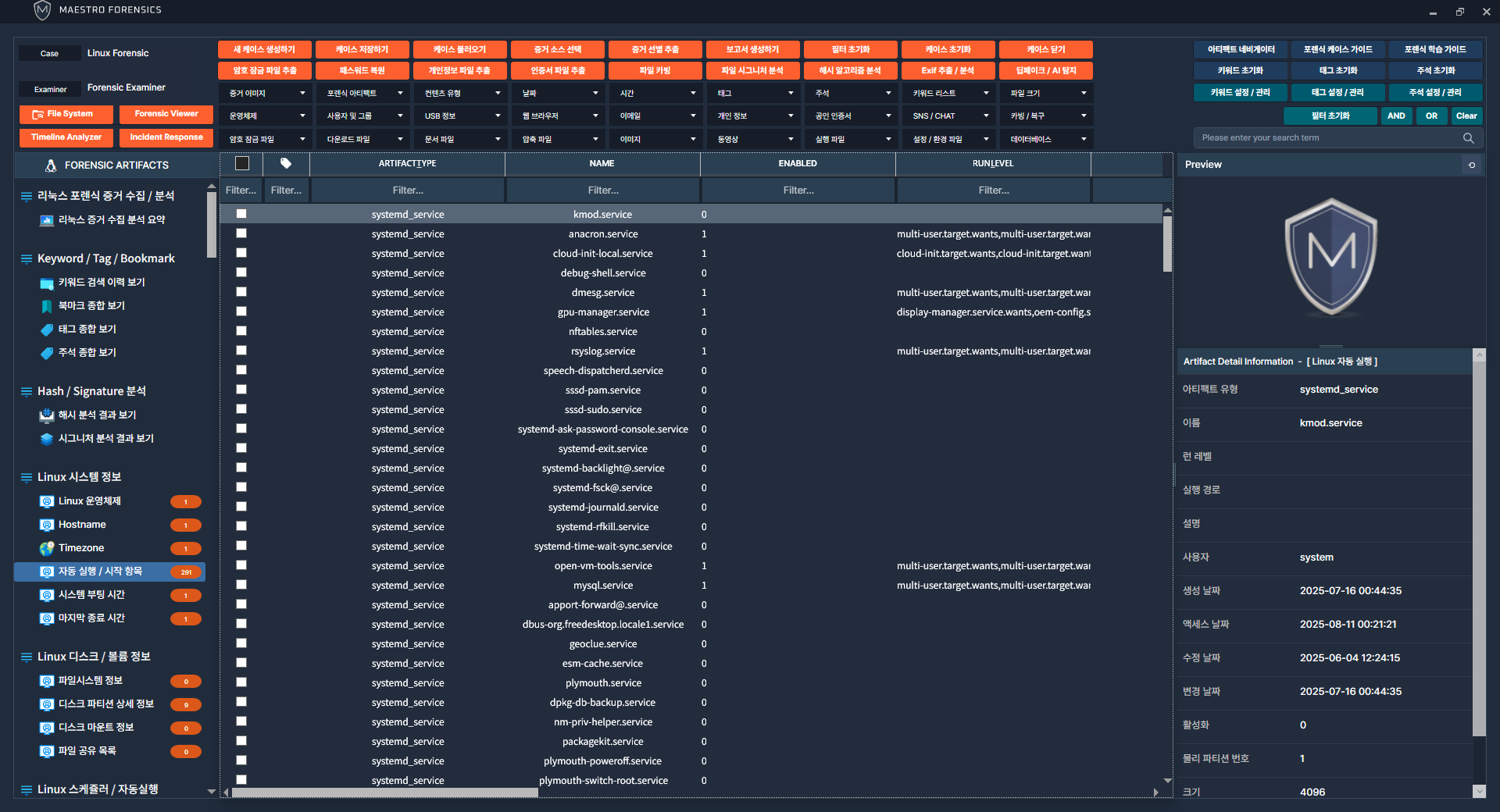 [ Linux 시스템 정보 ] 카테고리를 통해 운영체제 정보, 호스트 네임, 타임존 등 다양한 정보를 분석할 수 있습니다.