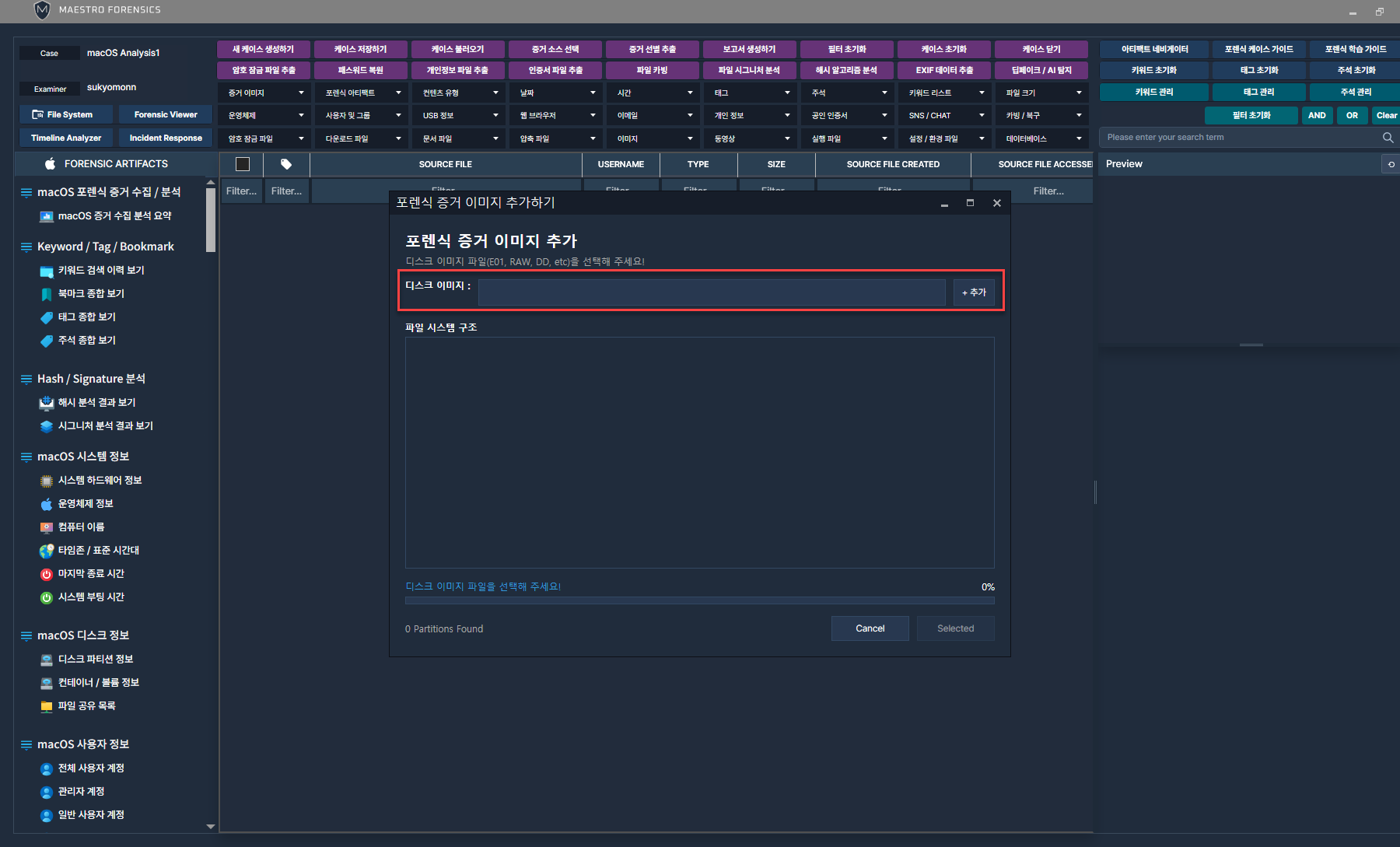 이미지 파일을 선택 후 증거 데이터를 불러오기 가능 합니다.