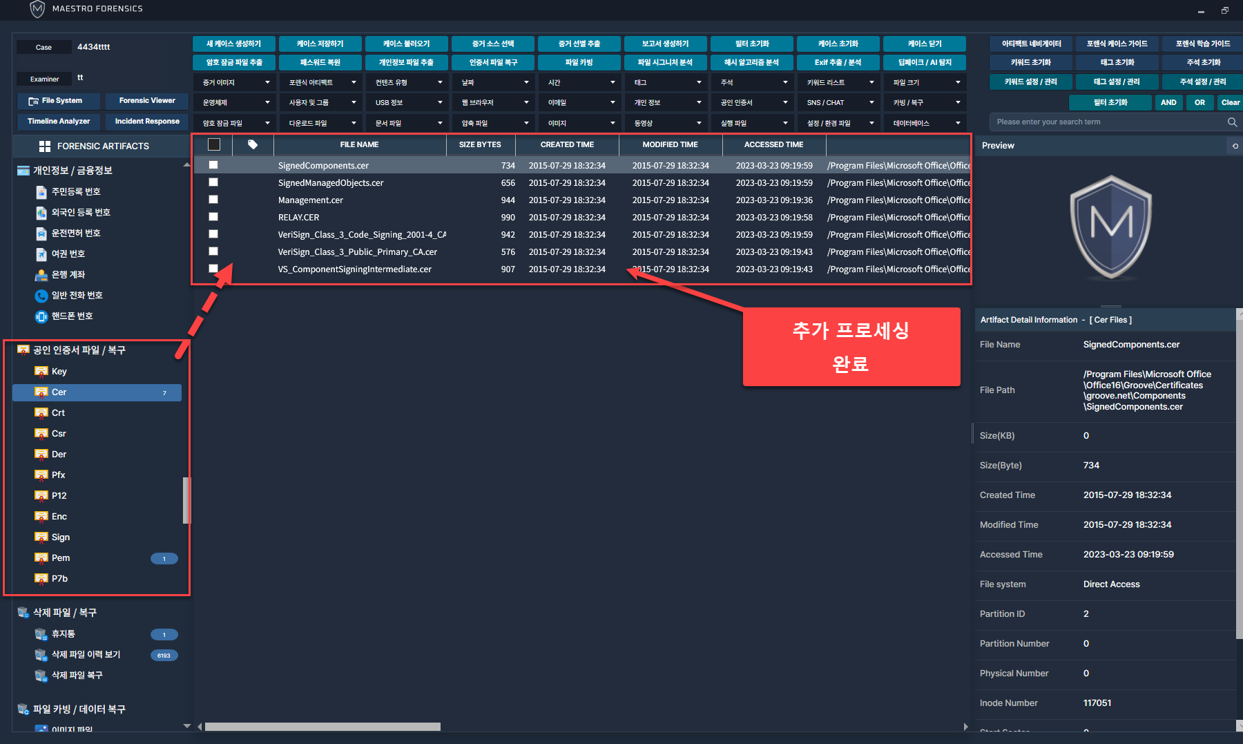 MAESTRO WiSDOM은 초동수사 외 2차 분석이 필요한 경우 추가 프로세스를 진행할 수 있습니다.