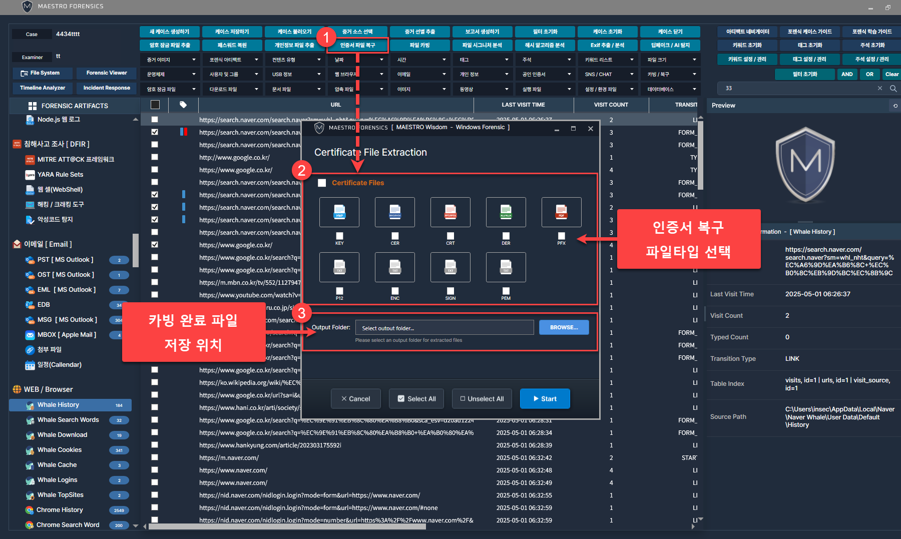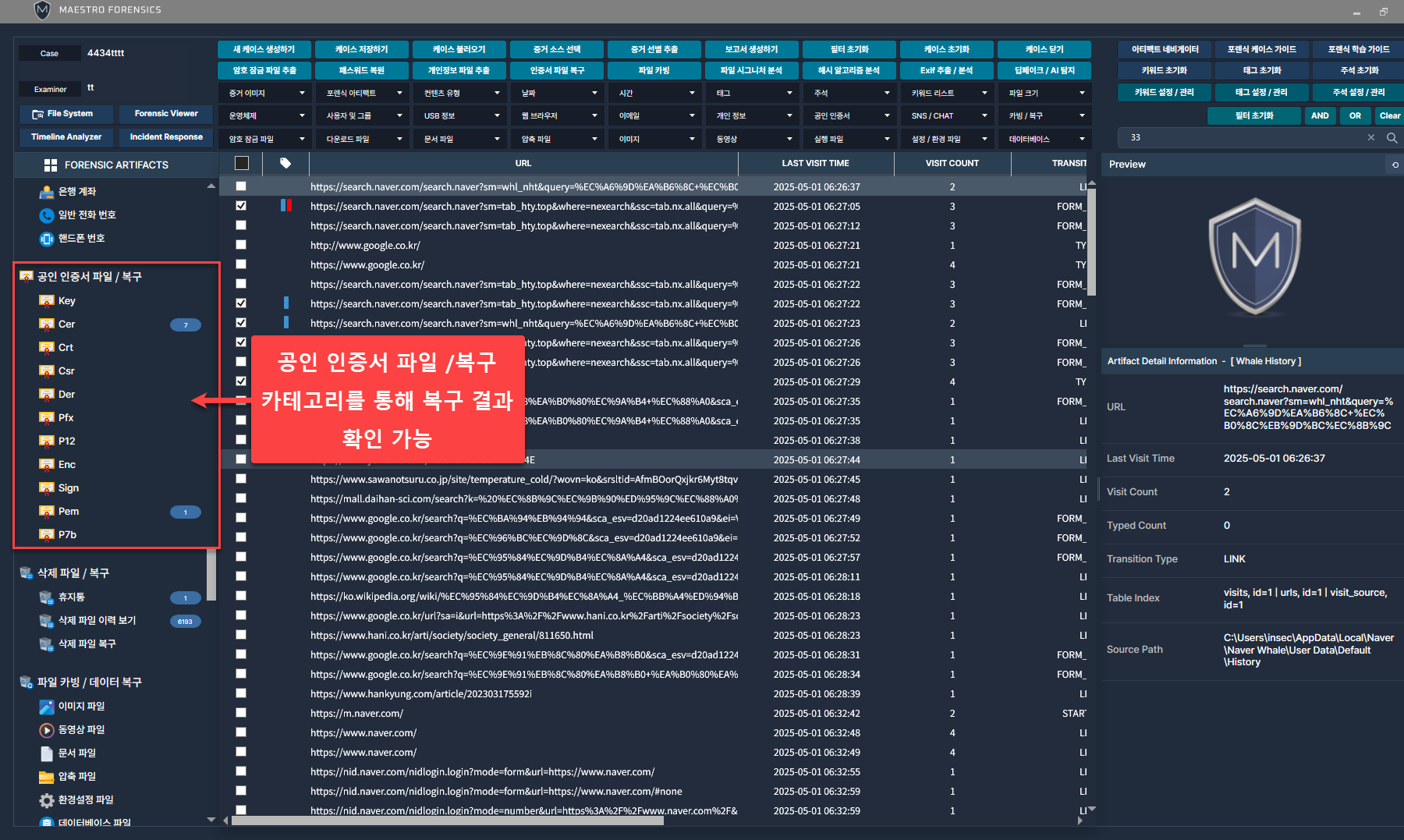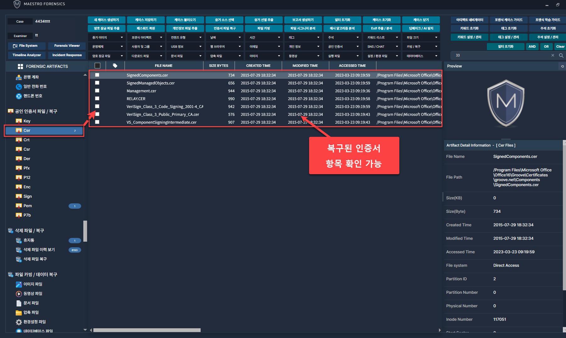 MESTRO WiSDOM 다양한 인증서 파일 복구 및 카빙 기능 지원