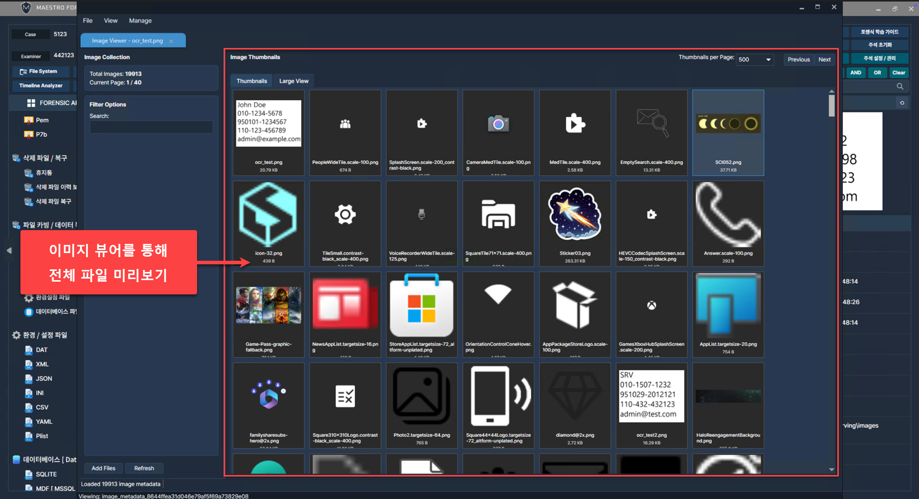 이미지 뷰어(Image Viewer)를 통해 카빙된 전체 이미지 썸네일 보기.