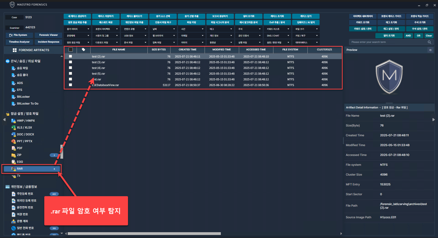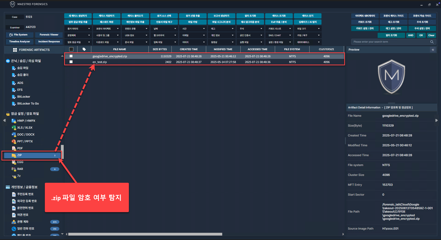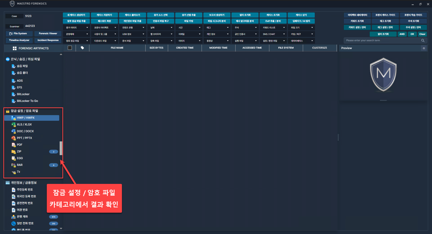 탐지 결과는 [잠금 설정 /암호 파일] 카테고리를 통해 확인 가능