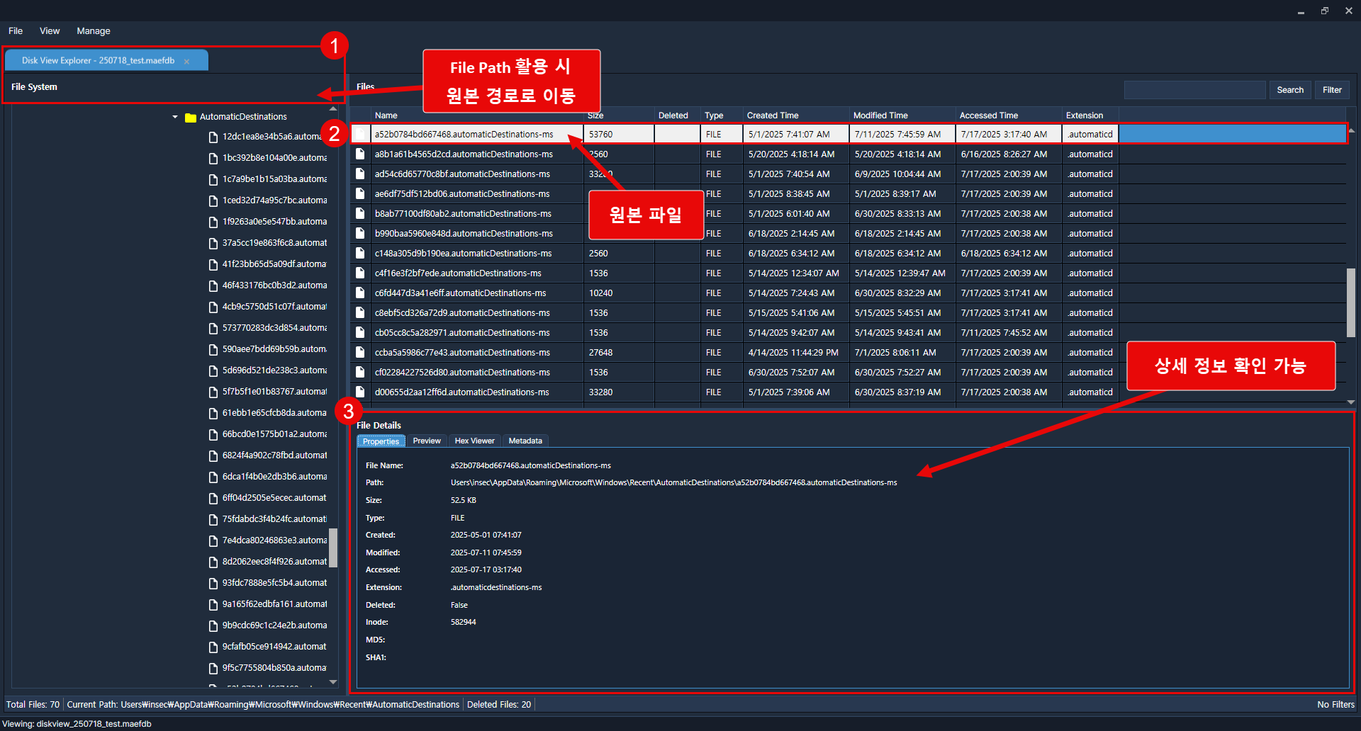 wisdom에서 제공하는 [파일 시스템 뷰어]를 통해 원본 파일을 찾고 데이터 검증 가능.