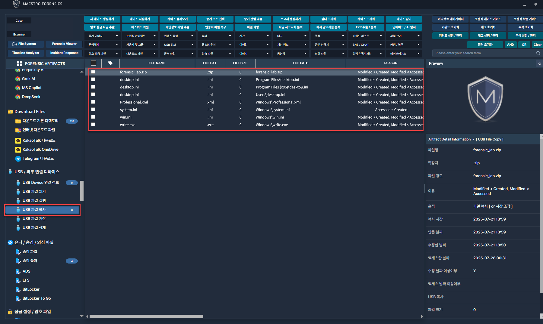 MAC Time 분석 기능을 추가하여 복사된 파일을 찾고 USB로 부터 복사된 파일을 검증하는 단계.